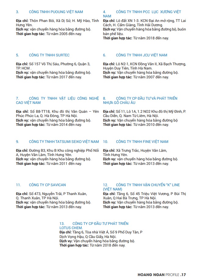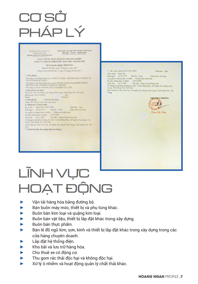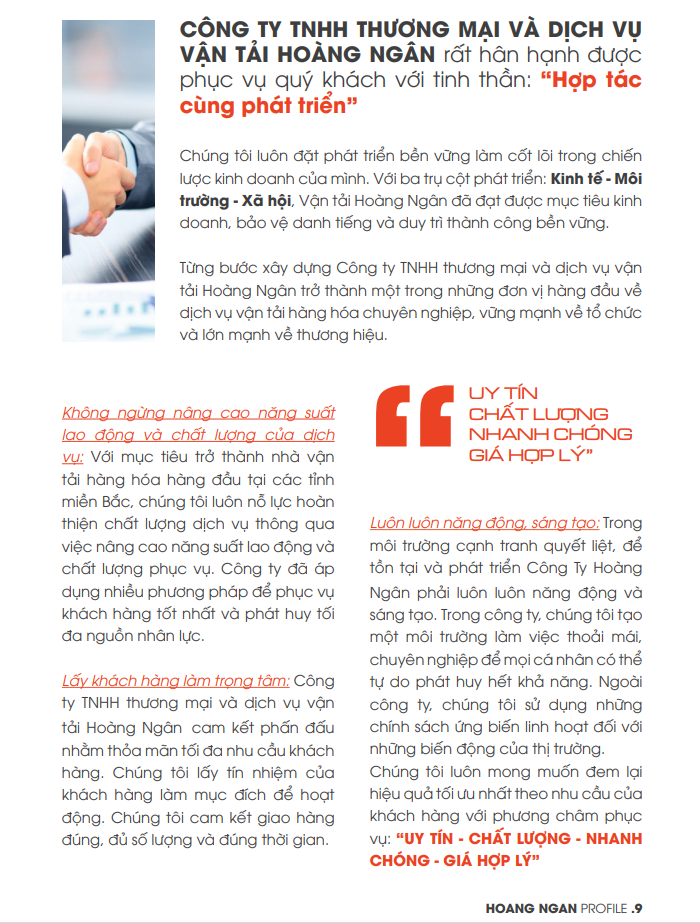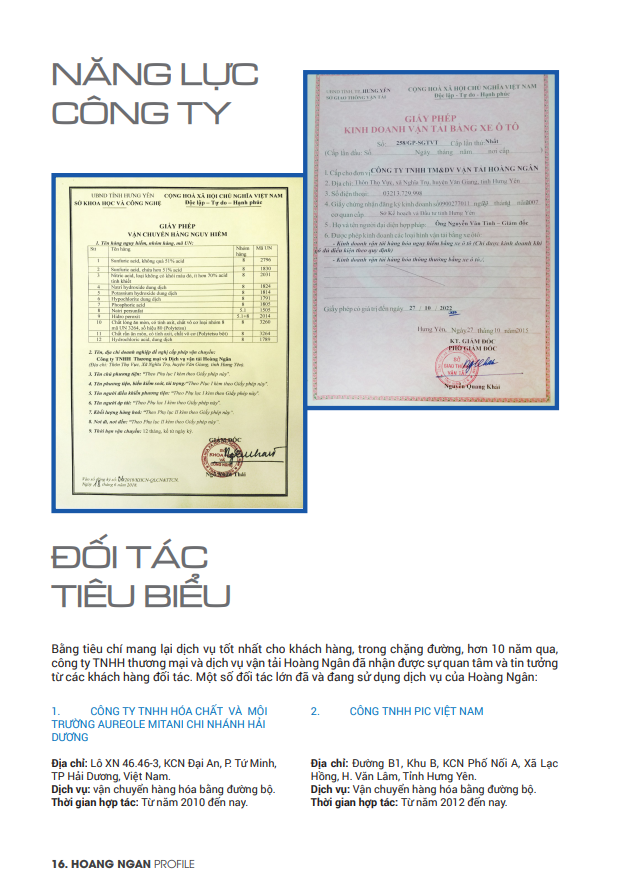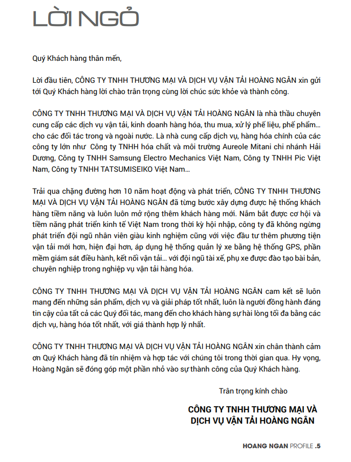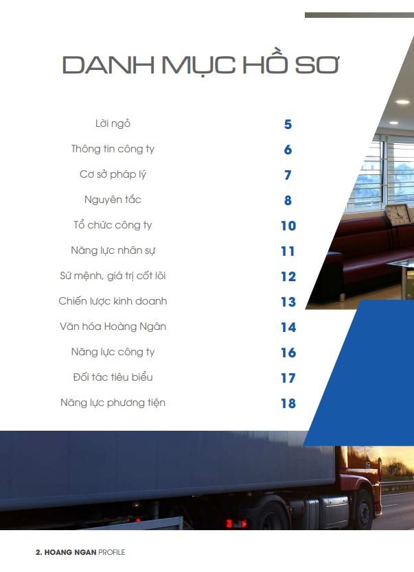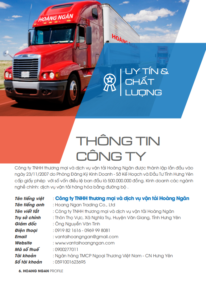 Vận tải Hoàng Ngân xin gửi đến quý khách hàng hồ sơ năng lực chi tiết